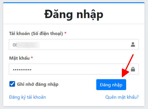 Sử dụng tài khoản và mật khẩu đăng ký tại bước 1 để đăng nhập vào hệ thống.
